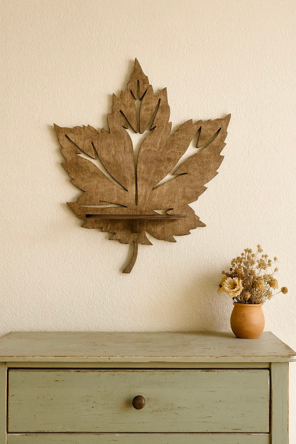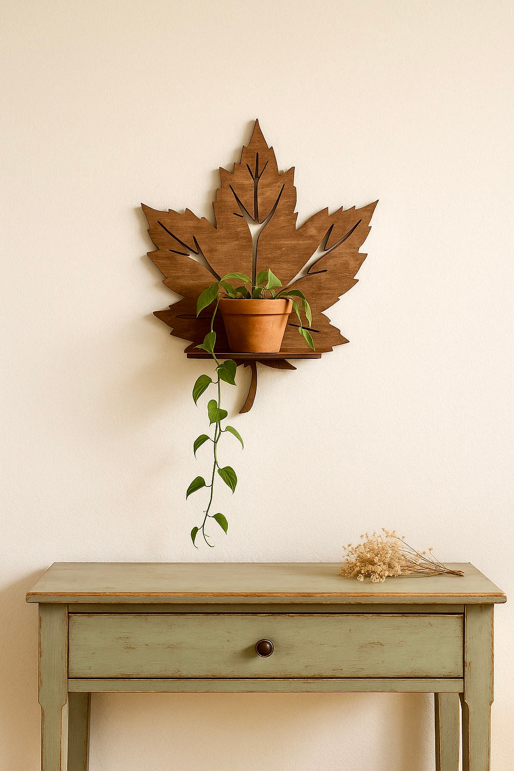 Porta un tocco naturale e shabby alla tua casa con questa mensola in legno a forma di foglia. Realizzata artigianalmente con cura nei dettagli, unisce design decorativo e funzionalità: perfetta per esporre piccoli oggetti, vasetti, fiori secchi o piantine ricadenti.