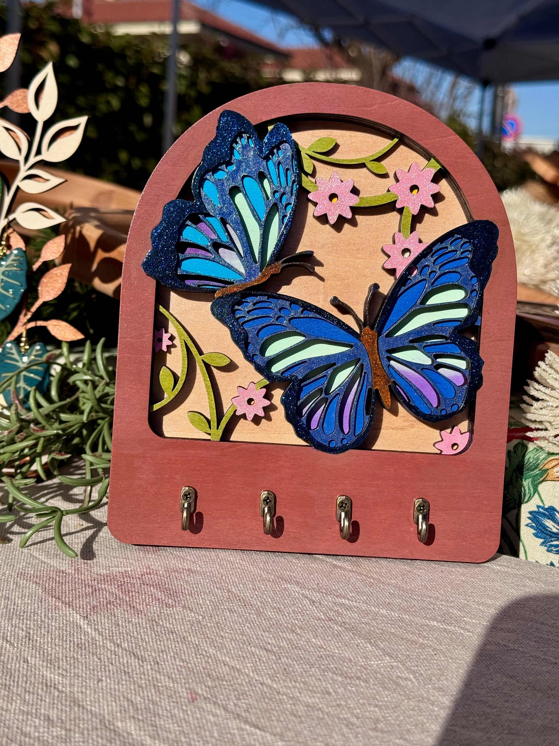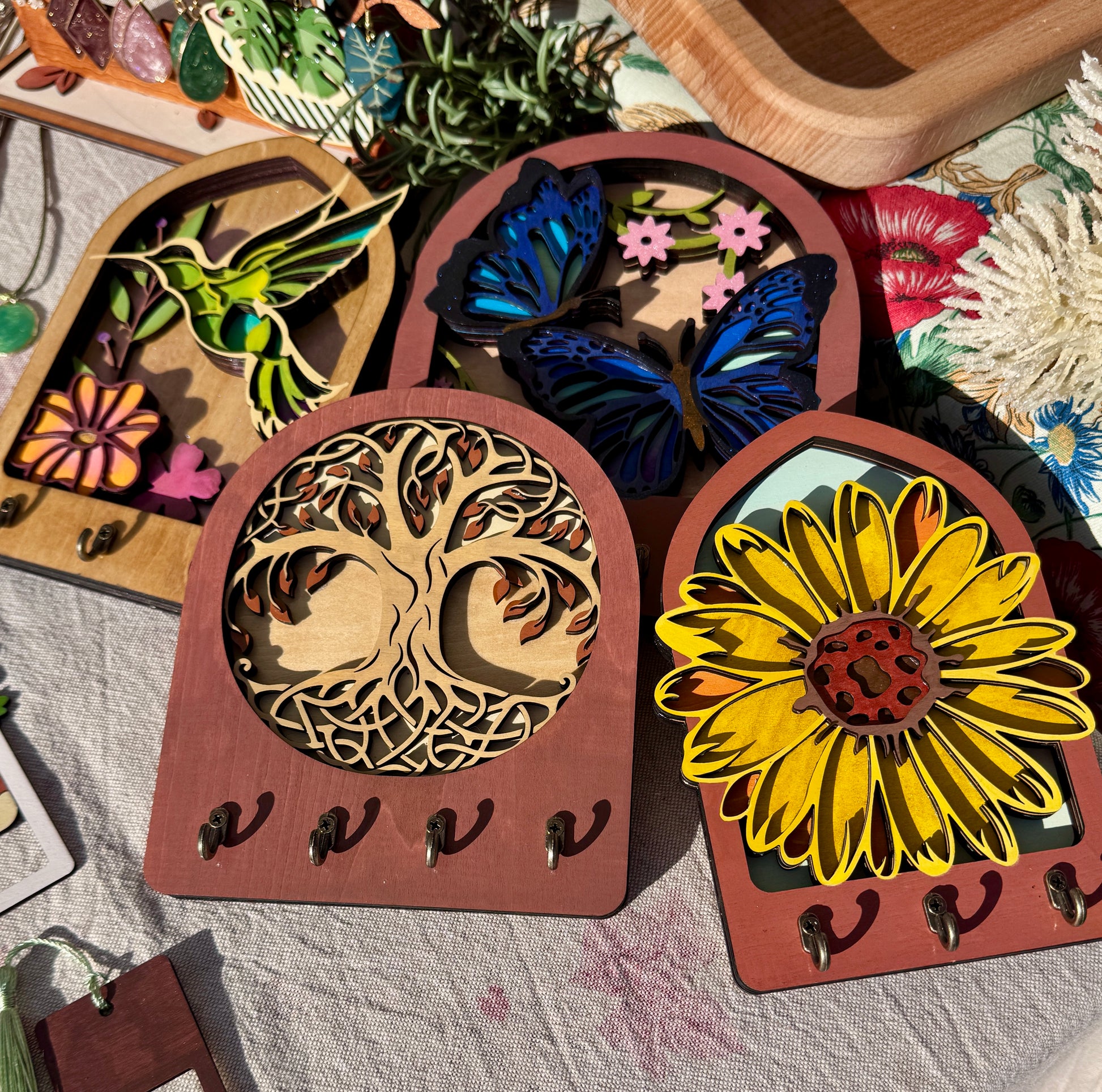 Le varianti disponibili – Albero della Vita, Farfalle, Girasole e Colibrì – celebrano energia, rinascita e bellezza naturale attraverso colori brillanti, intagli precisi e soggetti che portano armonia negli ambienti. Perfetti per ingresso, cucina, studio o cameretta, questi portachiavi diventano un dettaglio decorativo che arreda, personalizza e mette ordine.
