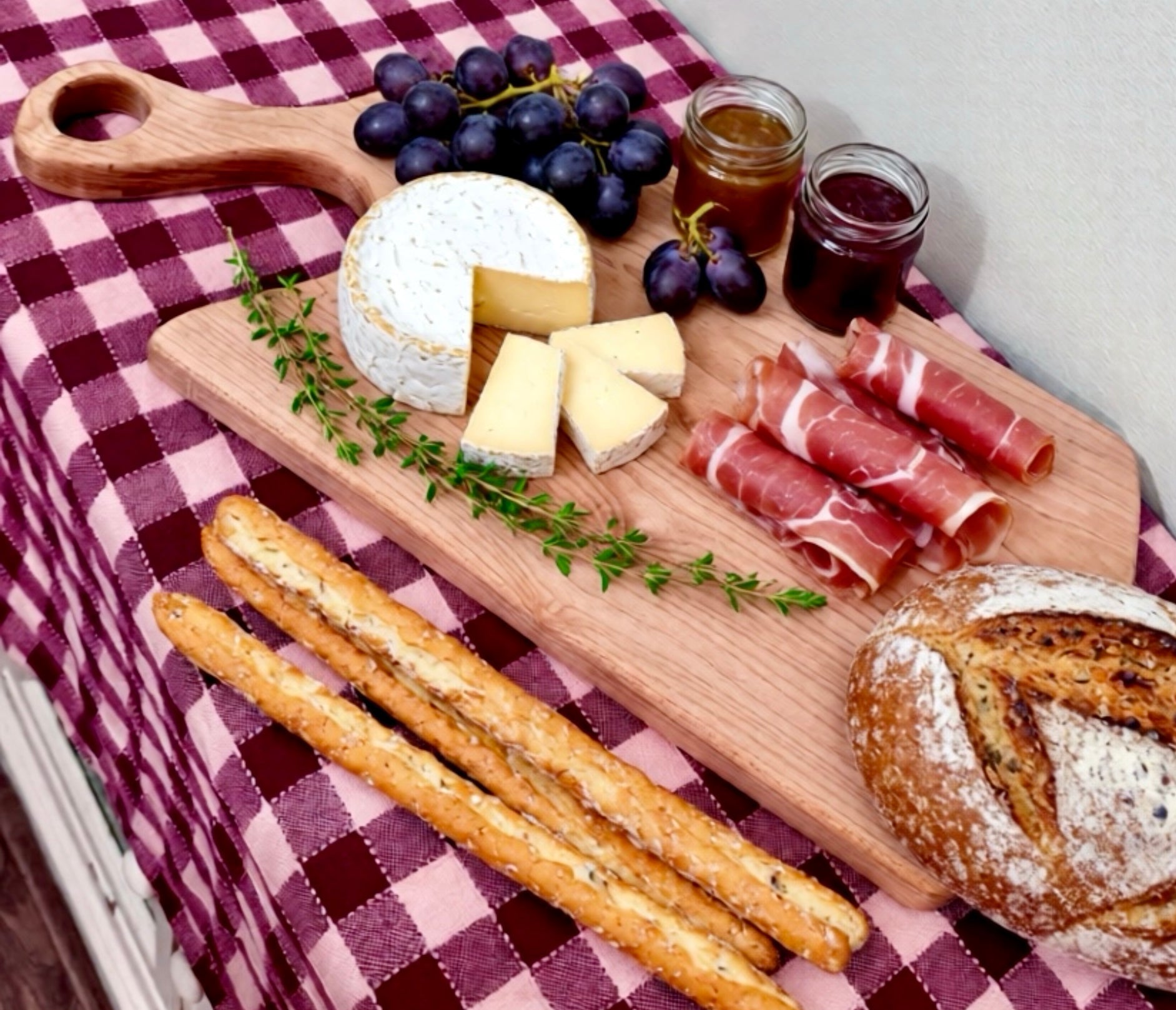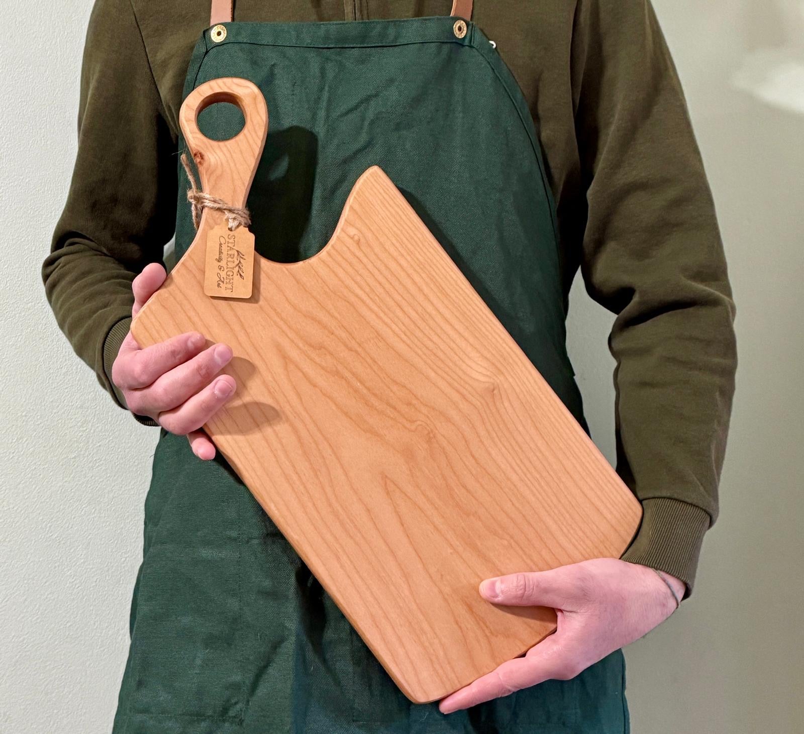 Tagliere realizzato a mano nel nostro laboratorio in legno d'acero, perfetto per servire salumi, formaggi, antipasti o piccoli aperitivi con un tocco rustico ed elegante.