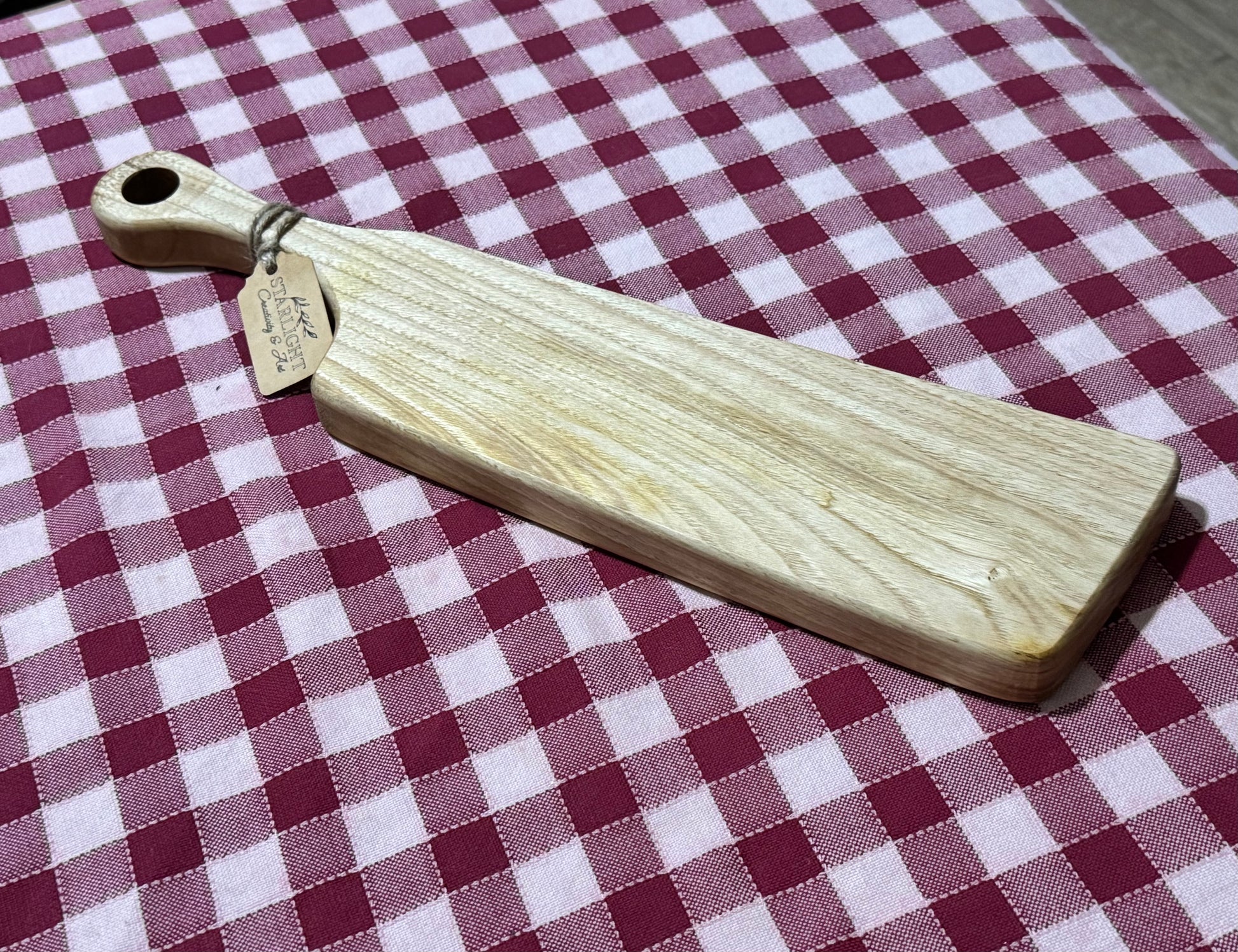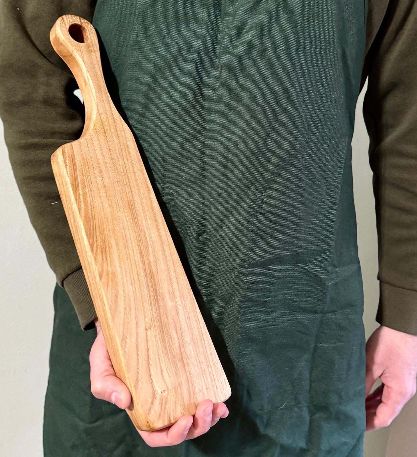Realizzato a mano nel nostro laboratorio con legno di castagno, questo tagliere unisce resistenza, naturalezza e uno stile rustico che ricorda le cucine di una volta. Le sue venature calde e i dettagli del legno lo rendono unico e perfetto per servire salumi, formaggi, pane o aperitivi.