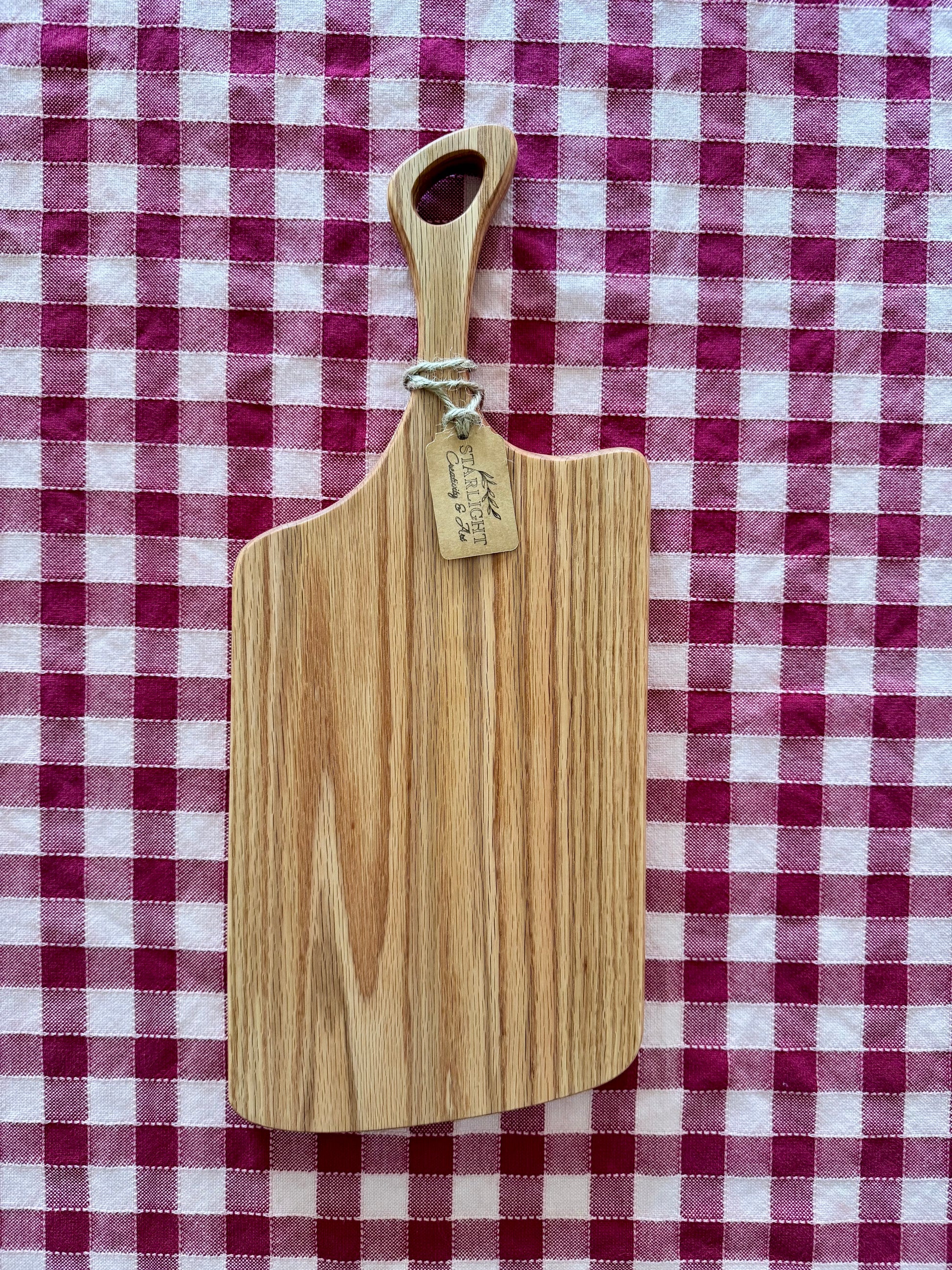 Realizzato nel nostro laboratorio, rifinito a mano nei minimi particolari, in pregiato legno di rovere americano, questo tagliere unisce resistenza, naturalezza e uno stile rustico/country/ shabby tipico delle nostre creazioni. Le sue venature calde e i dettagli del legno lo rendono unico e perfetto per servire salumi, formaggi, pane o aperitivi.